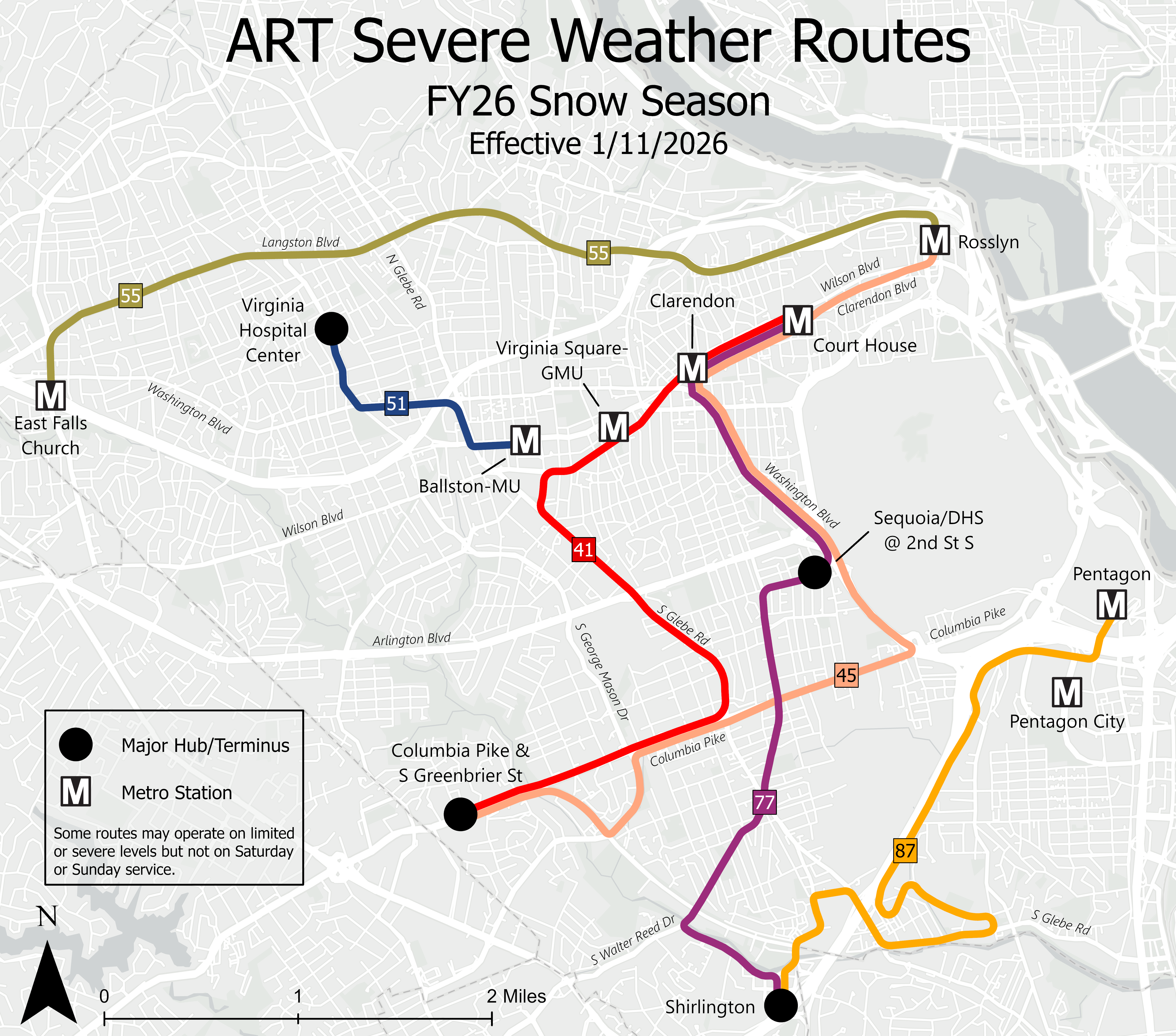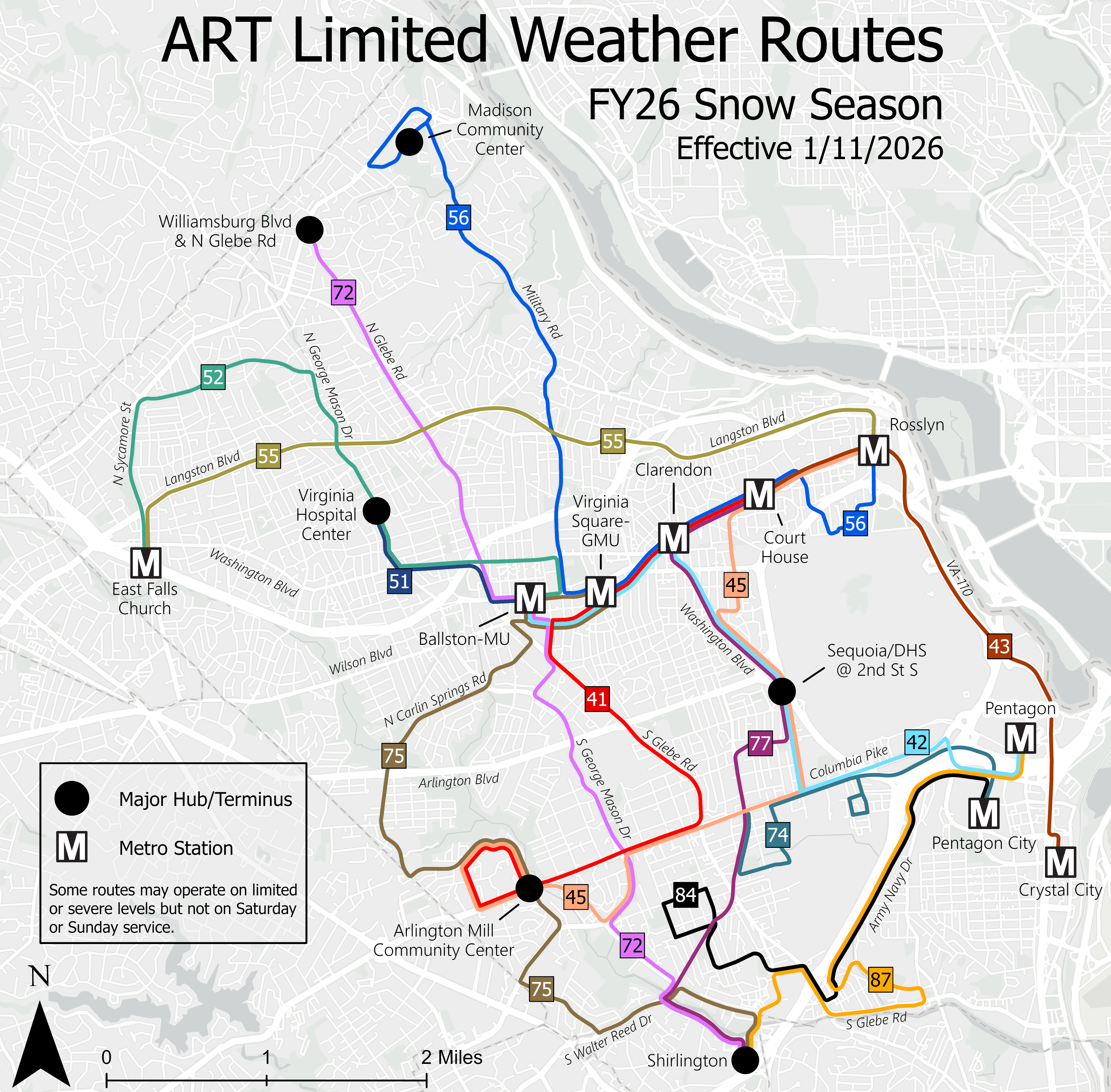No Service: Cherry Hill Rd. between Lorcom Lane & Military Rd. ART will use Langston Blvd instead.